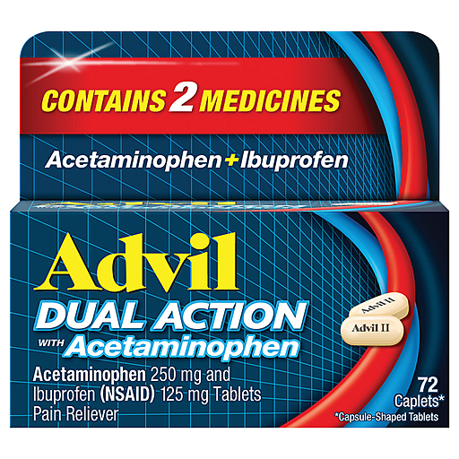 Advil =Dual Action With Acetaminophen Pain Reliever 72 Ea