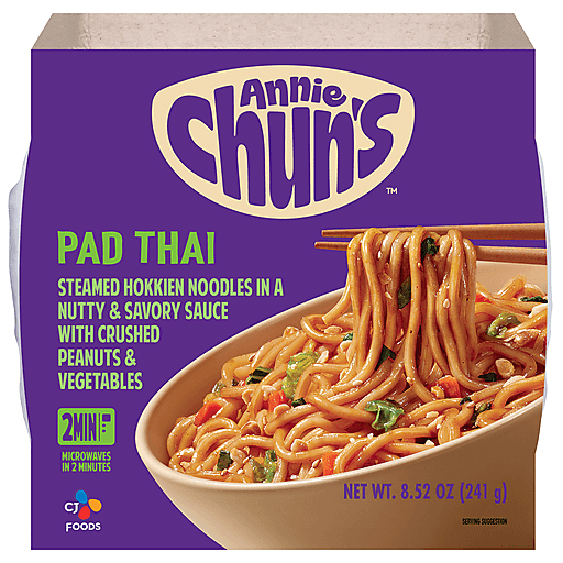 Slurp, slurp, hooray! Introducing Annie Chun's Pad Thai Noodle Bowl. We're talking about a nutty and savory sauce with Hokkien noodles, crushed peanuts, cabbage, bok choy, carrots, green onion, and roasted sesame seeds. Yum! All that slurp-worthy goodness is packaged in a convenient microwaveable bowl so it's noodle time, anytime. Microwaves in 2 minutes, Annie Chun's noodle bowls are ideal as part of an office lunch, late night snack, or anytime the noodle craving hits. Go wild, add green onions, bean sprouts, or top with extra protein like tofu, chicken, shrimp, or whatever your belly desires. Your bowl, your rules. Embrace the slurp and find more favorites with Annie Chun's Soup Bowls, Ramen Bowls, and Noodle Bowls.
